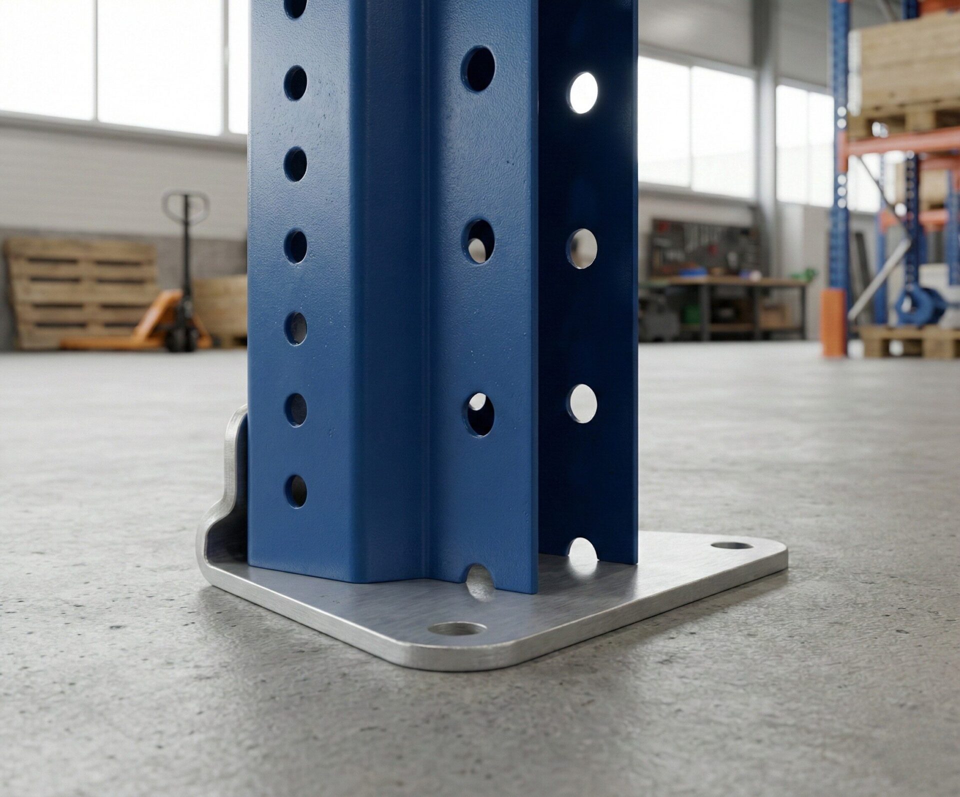 Il montante è l’elemento verticale portante della scaffalatura, mentre il piede rappresenta la base di appoggio a terra, essenziale per la stabilità e la sicurezza dell’impianto. Insieme costituiscono la struttura portante principale, garantendo resistenza ai carichi statici e dinamici derivanti dalle operazioni di prelievo e deposito.